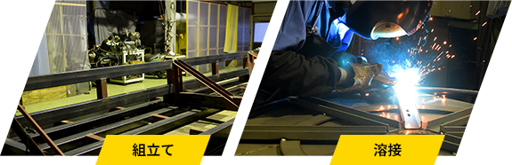 設計図にしたがって、加工された鋼材の組立てや溶接を行います。その後、長期間の防錆効果を得るための錆止め塗装を施し、品質確認を経て出荷します。